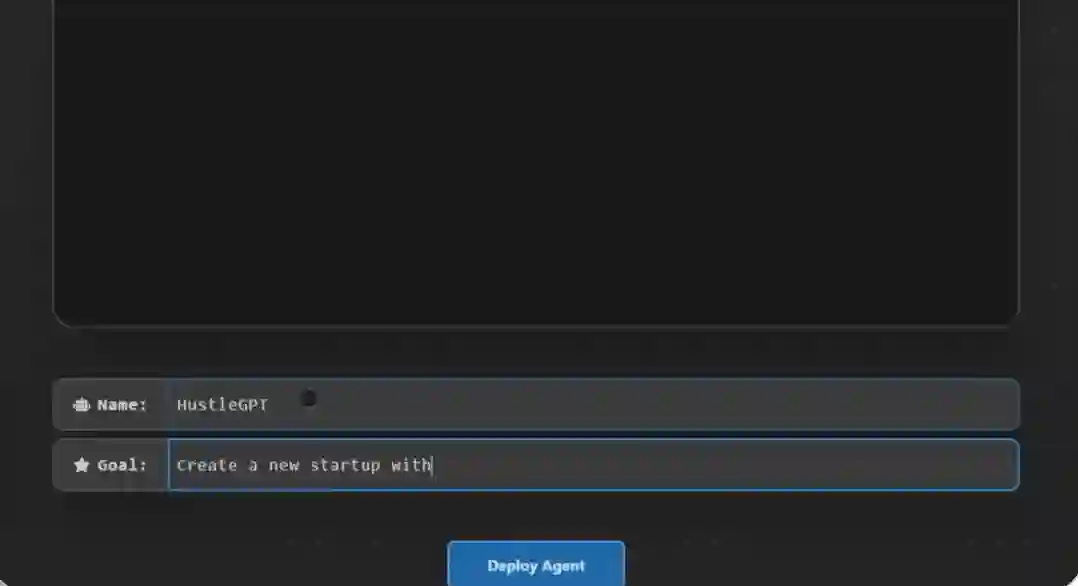 AgentGPT 允许你为自定义 AI 命名,让它执行任何想要达成的目标。自定义 AI 会思考要完成的任务、执行任务并从结果中学习,试图达成目标。如下为 demo 示例:HustleGPT,设置目标为创立一个只有 100 美元资金的初创公司。