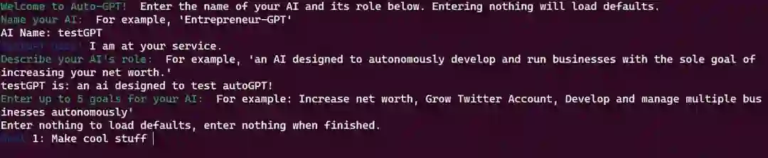 执行以下命令,运行 AutoGPT。