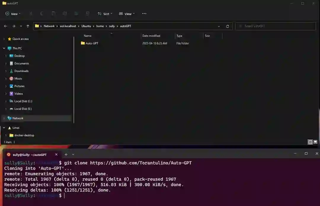 首先从 GitHub 中克隆 AutoGPT 存储库。