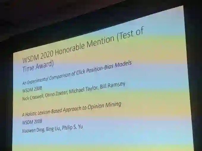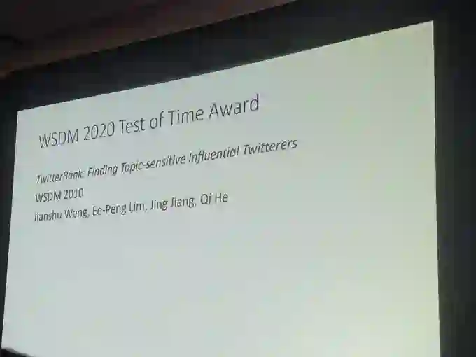 【导读】WSDM 2020全称为第13届国际互联网搜索与数据挖掘会议(The 13thInternational Conference on Web Search and Data Mining, WSDM 2020),将于2020年2月3日-2月7日在美国休斯敦召开。WSDM是CCF推荐的B类国际学术会议,由SIGIR、SIGKDD、SIGMOD和SIGWEB四个专委会协调筹办,在互联网搜索、数据挖掘领域享有较高学术声誉。这次会议共收到来自615篇长文投稿,仅有91篇长文被录用,录用率约15%。大会公布了最佳论文系列奖项,最佳论文由加利福尼亚大学圣克鲁兹分校(University of California, Santa Cruz,简称UCSC)获得-主轴的幂用于精确团计数,最佳论文亚军(Runner Up)论文由双曲度量学习由新加坡南洋理工获得-双曲度量学习。