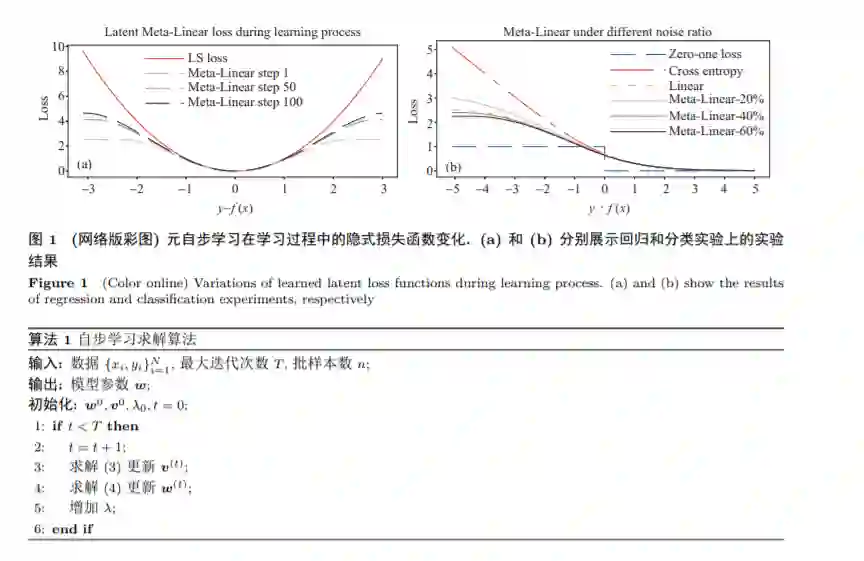 自步学习是近年来机器学习领域提出的一种启发于人和动物 “由易到难” 学习过程的学习机 制. 尽管自步学习已取得可喜的理论与应用进展, 但是当前的自步学习算法仍存在超参数选择的瓶颈 问题. 针对该问题当前主要采用一些启发式的手工设计方法或者交叉验证方法, 然而此类方法效率很 低, 缺乏理论性指导, 难以推广应用到广泛的实践问题中. 针对这一挑战性问题, 本文提出一种基于元 学习机理的自步学习算法, 该方法能使自步学习中涉及的超参数以数据驱动的方式自动习得, 从而大 大减弱了自步学习的这一核心问题. 特别地, 我们针对 3 种典型的自步学习实现格式, 将所提元学习 策略实质性嵌入, 通过回归和分类实验验证了所提算法的准确性和泛化性, 特别验证了相比于传统超 参设置方法的显著优越性.