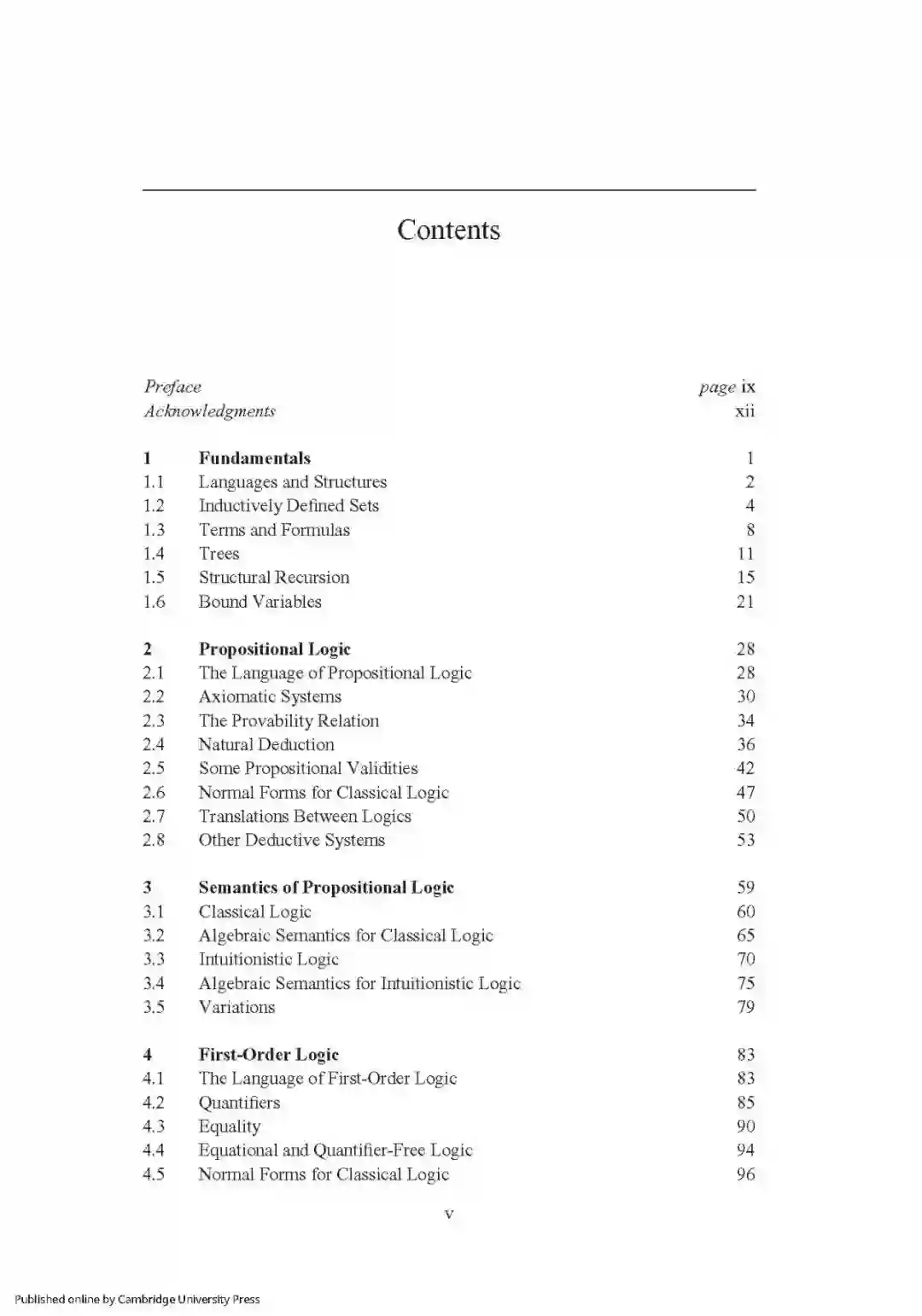 这本关于数学逻辑的新书由Jeremy Avigad从句法的角度全面介绍了该学科的基本结果和方法,强调逻辑是对形式语言和系统及其正确使用的研究。主题包括证明理论、模型理论、可计算性理论和公理基础,并特别强调计算机科学的基础数学逻辑方面,包括演绎系统、构造逻辑、简单类型lambda演算和类型理论基础。清晰和引人入胜,有丰富的例子和练习,它是一个优秀的介绍,为研究生和高级本科生谁对逻辑感兴趣的数学,计算机科学,和哲学,和任何实践逻辑学家的书架宝贵的参考。在短语数理逻辑中,“数学的”一词是模糊的。它可以用来指定所用的方法,这样这个短语就指的是数学中对推理原理的研究。可以对所考虑的推理类型进行划分,因此该短语指的是专门研究数学推理的研究。或者它也可以用来表示目的,因此这个短语指的是着眼于数学应用的逻辑研究。在这本书的标题中,“数学的”一词指的是前两种意思,而不是第三种意思。换句话说,数学逻辑在这里被看作是对数学推理方法的数学研究。这门学科本身就很有趣,而且在数学上也有应用。但它在计算机科学中也有应用,例如,硬件和软件的验证,以及数学推理的机械化。通过提供数学的理想模型,它也可以为数学哲学提供信息。逻辑作为一门学科的区别在于它对语言的关注。主体从正式的表达式开始,这些表达式被认为是我们用来定义对象、声明声明和证明它们的非正式语言的模型。在这一点上,两种截然不同的观点出现了。从语义的角度来看,形式表达式用于描述抽象的数学对象和结构。它们可以用来描述像群、环和场这样的结构类;描述特定结构,如欧几里得平面或实数;或者描述一个特定结构中的关系。从这个角度来看,数学逻辑是一门关于参考、可定义性和真理的科学,它阐明了决定数学语言和它所描述的数学结构之间关系的语义概念。本书采用了更多的句法视角,其中主要的兴趣对象是表达式本身。从这个角度来看,形式语言是用来推理和计算的,我们关心的是规范它们正确使用的规则。我们将使用形式系统来理解数学推理的模式以及数学定义和证明的结构,我们还会对我们能用这些语法表示来做的事情感兴趣。我们不会回避使用语义方法,但我们的目标是使用语义来阐明语法,而不是相反。语法方法之所以有价值,原因有很多。句法的数学理论本身就很有趣,而且信息量大。对语法对象的关注也与计算机科学更加一致,因为这些对象可以表示为数据并通过算法进行操作。最后,还有哲学上的好处。因为有限符号串的一般理论是处理表达式所需要的,句法视角提供了一种研究数学推理的方法——包括无限对象和方法的使用——而不必从一开始就引入强大的数学预设。这本书的另一个显著特点是它对计算的关注。一方面,我们期望数学能给我们一个广泛的概念理解。在这个主题的经验边界上,这有助于组织和解释我们的科学观察,但我们对理解的渴望并不局限于经验现象。另一方面,我们也希望数学能告诉我们如何计算轨迹和概率,这样我们就能做出更好的预测和决定,理性地行动,以实现我们的实际目标。概念理解和计算之间存在着张力:计算是重要的,但我们经常通过抑制计算细节看得更远,推理更有效。