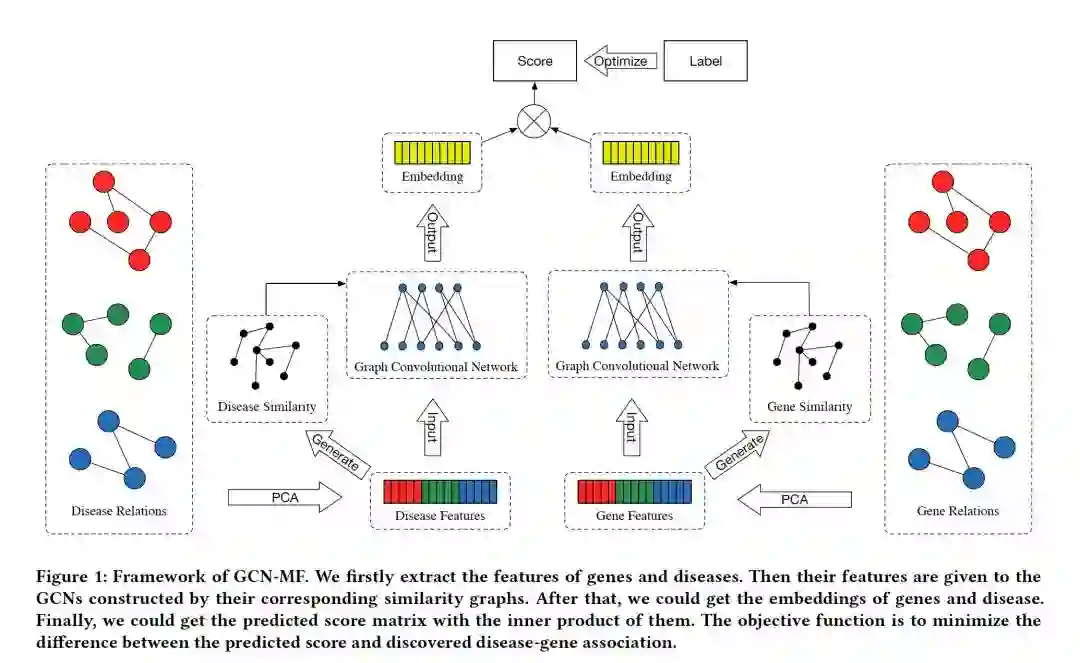 摘要:发现疾病基因关联是一项基础性和关键性的生物医学任务,它有助于生物学家和医生发现症候的致病机制。基于网络的半监督学习(NSSL)是这些研究中常用的一种方法,它利用各种临床生物标志物来测量基因和疾病表型之间的相似性,来解决这个类平衡的大规模数据问题。然而,大多数现有的NSSL方法都是基于线性模型的,存在两个主要限制:1)它们隐式地考虑每个候选对象的局部结构表示; 2)他们无法捕捉疾病和基因之间的非线性联系。本文将图卷积网络(GCN)和矩阵因子分解相结合,提出了一种新的疾病基因关联任务框架GCN-MF。在GCN的帮助下,我们可以捕获非线性相互作用,并利用测量到的相似性。此外,我们定义了一个边际控制损失函数,以减少稀疏性的影响。实验结果表明,所提出的深度学习算法在大多数指标上都优于其他最先进的方法。