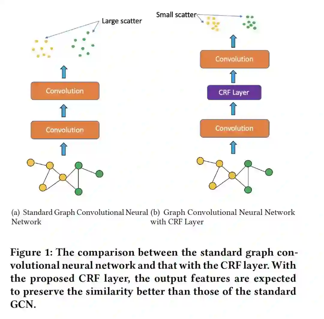摘要:图卷积神经网络近年来受到越来越多的关注。与标准卷积神经网络不同,图卷积神经网络对图数据进行卷积运算。与一般数据相比,图数据具有不同节点间的相似性信息。因此,在图卷积神经网络的隐层中保存这种相似性信息是非常重要的。然而,现有的工作没有做到这一点。另一方面,为了保持相似关系,对隐藏层的增强是一个挑战。为了解决这一问题,我们提出了一种新的CRF层用于图卷积神经网络,以使得相似节点具有相似的隐藏特征。这样,可以显式地保存相似性信息。此外,我们提出的CRF层易于计算和优化。因此,它可以很容易地插入到现有的图卷积神经网络中,提高其性能。最后,大量的实验结果验证了我们提出的CRF层的有效性。