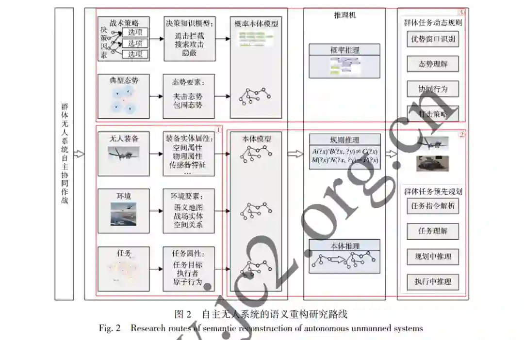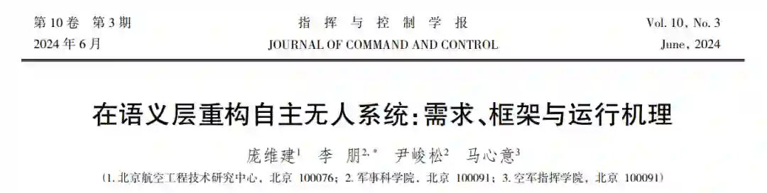 针对无人系统实现高级任务自主性的问题,提出在语义层重构自主无人系统的技术路线。分析了自主无人系统关键能 力需求,阐释了语义重构的内涵、优势和运行机理。自主无人系统的语义重构技术路线强调:通过在语义层重构自主无人系 统,实现无人系统任务、环境和系统自身的语义化描述;通过构建知识本体实现领域知识的统一表示和群体信息共享,利用语 义知识引擎实现群体认知达到任务协同和能力互操作的目的;利用知识推理和不确定性知识推理实现认知基础上的任务自主规 划。通过在语义层重构自主无人系统,将自主无人系统的规划问题上升到认知层面,实现硬件与软件,规划问题与规划方法, 人类干预与自主规划等问题的解耦。
