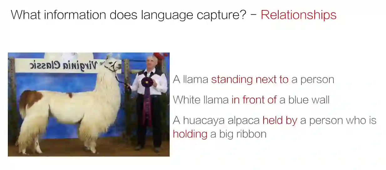 简介: 计算机视觉研究大多都集中在不重叠的目标对象上,然而,目标对象却不足以描述丰富的视觉知识,于是,研究者就通过语言特征来获取更多的信息。通过图片与文字叙述相结合的多模态信息融合来获取一个场景图谱。