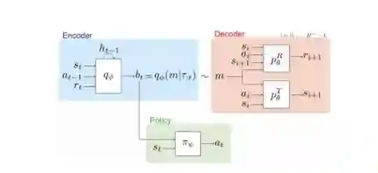 在未知环境中权衡探索和开发是最大程度地提高学习过程中预期回报的关键。 一种贝叶斯最优策略,它以最佳方式运行,不仅取决于环境状态,还取决于主体对环境的不确定性,决定其行动。 但是,除了最小的任务外,计算贝叶斯最佳策略是很困难的。 在本文中,我们介绍了变分贝叶斯自适应深度RL(variBAD),这是一种在未知环境中进行元学习以进行近似推理的方法,并直接在动作选择过程中合并任务不确定性。 在网格世界中,我们说明variBAD如何根据任务不确定性执行结构化的在线探索。 我们还评估了在meta-RL中广泛使用的MuJoCo域上的variBAD,并表明与现有方法相比,它在训练过程中获得了更高的回报。