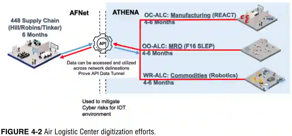 因其为利用数字工程而进行的5年努力,被选为数字化应用用例的空军保障中心,是一个负责多种武器系统的地理上分散的组织。空军保障中心的职责是基地级维修、供应链管理以及运营与安装支持。作为起点,空军保障中心拥有大量数字化能力。然而,大部分能力位于孤立的工作站上,同一地点内部集成度很低,更不用说跨整个企业了。遗留基础设施对企业范围内的集成构成了阻碍。云基础设施的出现和被接受,使得从这种环境过渡成为可能。空军保障中心集成工作的主要组成部分是主要中心之间的内联网,利用商用现货产品,实现信息共享和业务协调。
