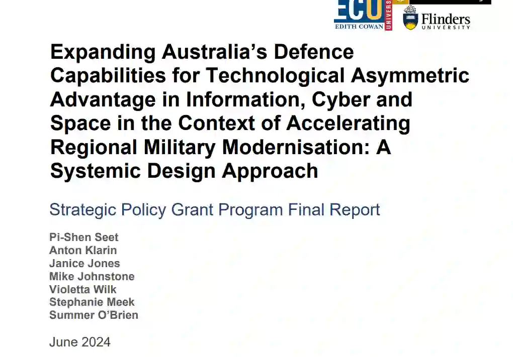 导言。该项目的目的是开展一项系统设计研究,以评估澳大利亚在地区军事技术进步的背景下实现技术优势的机遇和障碍。研究重点关注以下三个领域:(1) 网络安全技术;(2) 信息技术;(3) 太空技术。