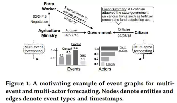 对于来自开源社会传感器的多种类型并发事件及其相关参与者进行建模是许多领域(如医疗保健、救灾和金融分析)的一项重要任务。预测未来的事件可以帮助人类分析师更好地理解全球社会动态,并做出快速而准确的决策。预期参与这些活动的参与者或参与者还可以帮助涉众更好地响应意外事件。然而,由于以下几个因素,实现这些目标是具有挑战性的:(i)难以从大规模输入中过滤出相关信息,(ii)输入数据通常为高维非结构化和Non-IID(非独立同分布),(iii)相关的文本特征是动态的,随时间而变化。最近,图神经网络在学习复杂和关系数据方面表现出了优势。本文研究了一种基于异构数据融合的时间图学习方法,用于预测多类型并发事件并同时推断多个候选参与者。为了从历史数据中获取时间信息,我们提出了一种基于事件知识图的图学习框架Glean,它结合了关系和单词上下文。我们提出了一个上下文感知的嵌入融合模块来丰富事件参与者的隐藏特性。我们在多个真实数据集上进行了广泛的实验,结果表明,所提出的方法在社会事件预测方面与各种先进的方法相比具有竞争力,而且还提供了急需的解释能力。