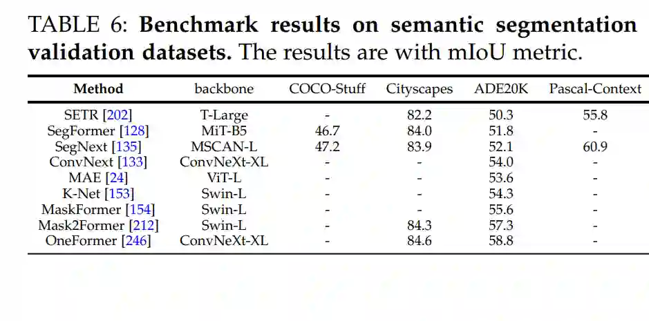 学习强大的特征表示总是可以得到更好的分割结果。以SS任务为例,SETR[202]是第一个用ViT骨干替换CNN骨干的。它在ADE20k数据集上取得了最先进的结果,没有花哨的东西。在vit之后,研究人员开始设计更好的视觉transformer。将相关工作分为3个方面:更好的视觉transformer设计、混合cnn /transformers/MLPs和自监督学习。