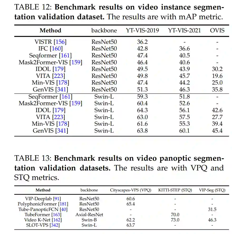 通用统一的图像/视频分割。使用Transformer来统一不同的分割任务是一种趋势。最近的工作[26],[153],[162],[163],[246]使用基于查询的transformer使用一个架构执行不同的分割任务。一个可能的研究方向是在各种分割数据集上仅通过一个模型来统一图像和视频分割任务。这些通用模型可以在各种场景中实现通用的、鲁棒的分割,例如在各种场景中检测和分割稀有类有助于机器人做出更好的决策。这些将在一些应用中更加实用和强大,包括机器人导航和自动驾驶汽车。