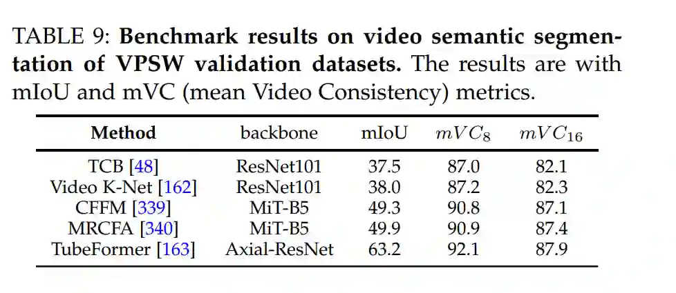 Multi-Dataset分割。多数据集分割的目标是学习不同领域上通用的分割模型。MSeg[297]通过重新标记几个现有的语义分割基准重新定义分类并对齐像素级注释。然后,接下来的工作试图通过各种方法来避免分类冲突。例如,Sentence-Seg[298]用向量值嵌入替换每个类标签。嵌入由语言模型[15]生成。为了进一步处理不灵活的one-hot通用分类法,LMSeg[252]使用可学习标记[268]扩展了这种嵌入,并为每个数据集提出了特定于数据集的增强。它将MaskFormer[154]中的段查询与SS和PS任务的类别嵌入动态对齐。同时,也有一些关于多数据集目标检测[299]、[300]和多数据集全景分割[301]的工作。特别是,Detection-Hub[300]建议根据每个数据集类别的语言嵌入调整对象查询。与之前对所有数据集的共享嵌入不同,它基于公共语言嵌入来学习每个数据集的语义偏差,以避免领域鸿沟。最近,TarVIS[302]为跨越多个基准的不同任务联合预训练一个视频分割模型,其中将Mask2Former扩展到视频领域,并采用统一的图像数据集预训练和视频微调。