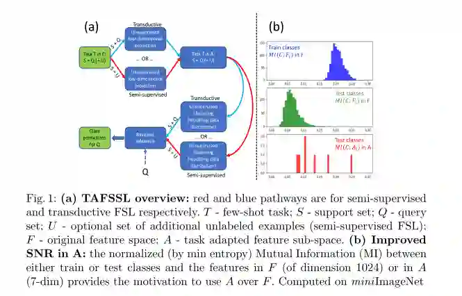 摘要:近来,少样本学习(FSL),即从非常少的(通常是1到5个)的例子中学习一个新的类别(在训练时候不存在),得到了很多关注和显著的性能进步。虽然已经为FSL提出了许多技术,但有几个因素已经成为影响FSL性能的最重要因素,即使是最简单的技术也可以授予SOTA。它们是:骨干架构(越大越好),预训练类型(元训练与多类别),基类的数量和多样性(越多越好),以及使用辅助自监督任务(增加多样性的代理)。在本文中,我们提出了TAFSSL,这是一种简单的技术,可以在伴随着一些额外的未标记数据的少样本任务中提高少样本性能。TAFSSL的直觉是基于减少预训练期间未见过的由新类别组成的少样本任务所固有的特征和采样噪声。具体地说,在具有挑战性的miniImageNet和tieredImageNet基准测试中,TAFSSL可以将当前最先进的转导和半监督FSL设置提高5%以上,同时将在FSL中使用未标记数据的性能提高到10%以上。