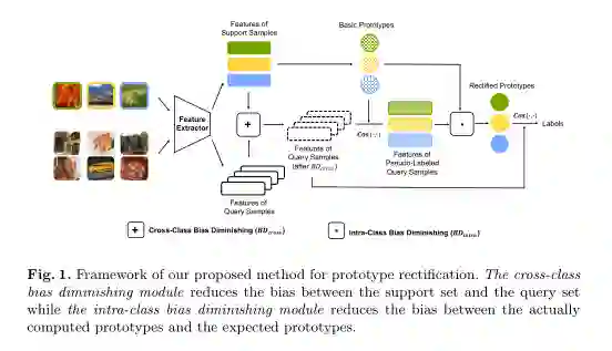 摘要:少样本学习要求识别具有稀缺标签数据的新类。原型网络(prototypical network)在现有的研究中是有用的,然而,对稀缺数据进行窄尺寸分布(narrow-size distribution)的训练往往会得到有偏差的原型。在本文中,我们找出了这一过程的两个关键影响因素:类内偏差和跨类偏差。然后,我们提出了一种简单而有效的方法,用于转导设置(transductive setting)下的原型校正。该方法利用标签传播(label propagation)来减小类内偏差,利用特征迁移来减小跨类偏差。我们还进行了理论分析,推导出其合理性以及性能的下界。在三个少样本基准上的有效性显示,我们的方法在miniImageNet(1-shot 70.31%, 5-shot 81.89%)和tieredImageNet(1-shot 78.74%,5-shot 86.92%)上都获得了最先进的性能。
