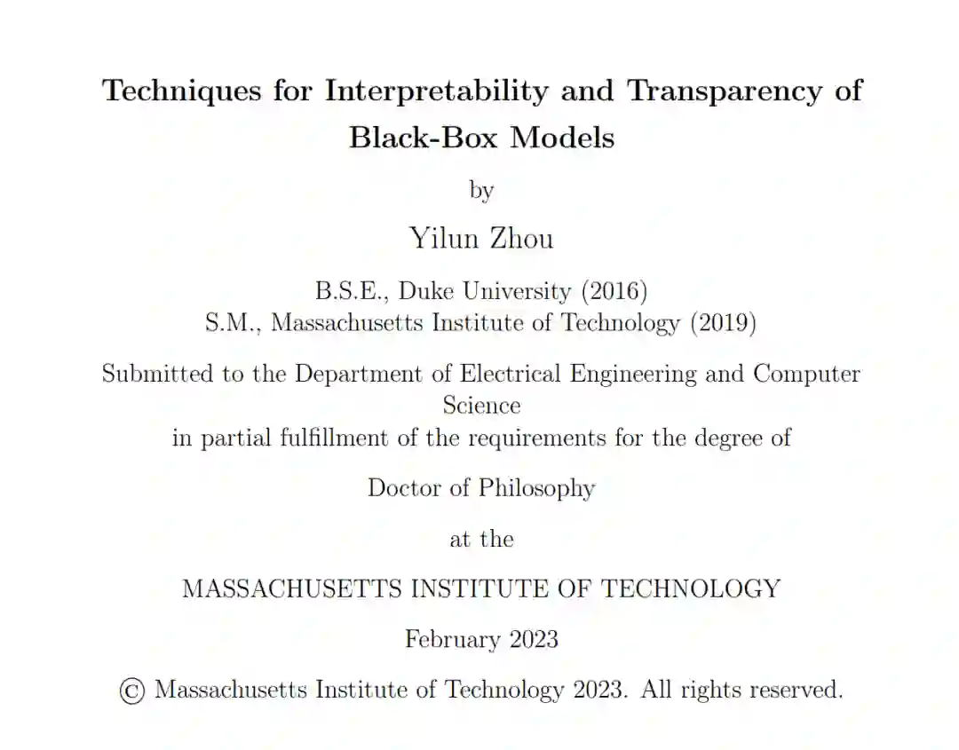 在过去的十年中,机器学习(ML)迅速改变了社会。从谷歌翻译、Facebook好友标记和Snapchat过滤器等日常产品和功能,到医疗诊断、保险承保和贷款审批等专家知识领域,再到自动驾驶、虚拟现实和基因治疗等新兴技术,ML在所有这些领域都发挥了关键作用,人们普遍认为,它的重要性只会越来越重要。尽管如此,ML的广泛应用也带来了独特的挑战。当我们无法手动指定模式时,ML的目标是从数据中自动发现它们。例如,在图像分类中,因为如果有可能的话,编写一个手动规则来分类像素矩阵是看起来更像猫还是狗是极其困难的,我们借助于ML在像素矩阵空间中学习一个决策边界,以将猫的边界和狗的边界分开。当边界具有非常复杂的形状时,就像大多数复杂任务需要的那样,理解它就成为一个严峻的挑战。因此,学习计算这些边界的模型通常由深度神经网络或树集成(例如,随机森林或增强树)表示,通常被称为“黑盒模型”。