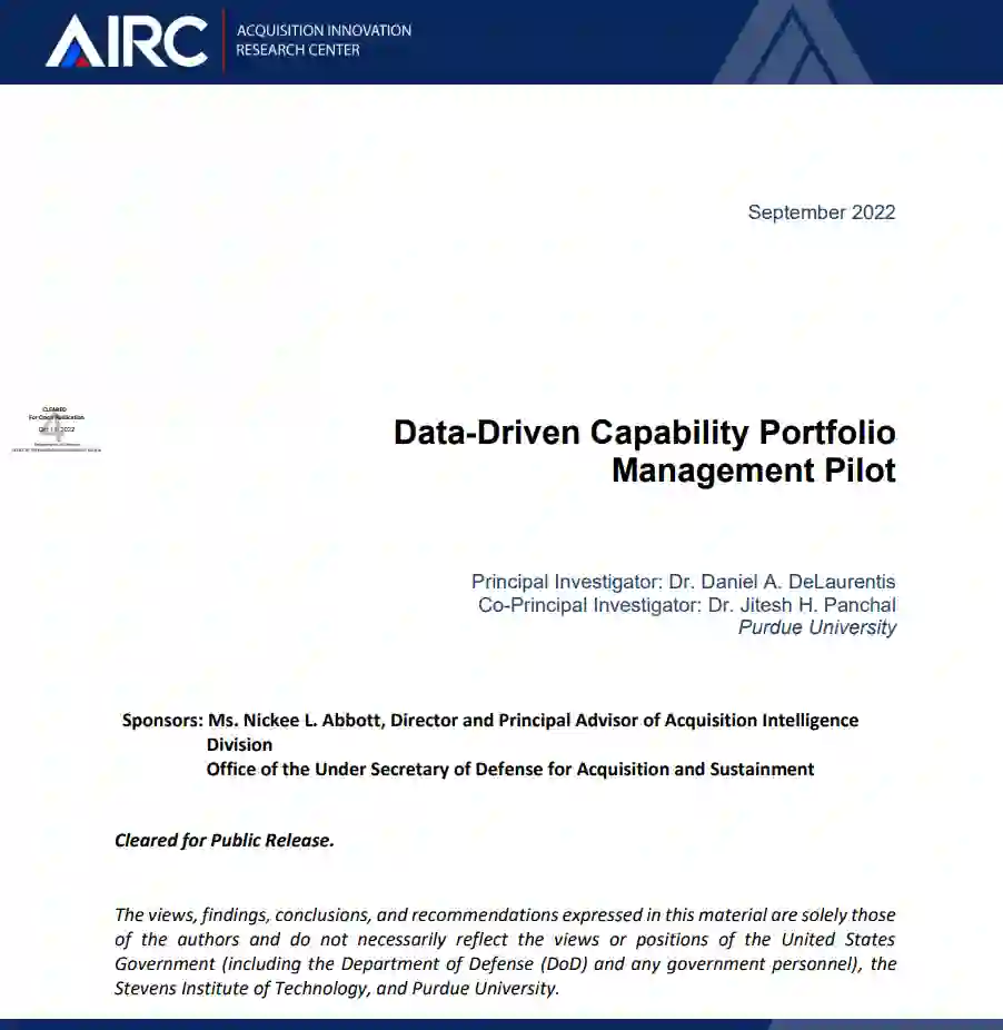 以组合为中心的方法:美国国防部(DoD)越来越重视现代化决策中的任务工程(ME)分析和架构开发,包括与需求开发和能力选择相关的投资和优先级排序,以支持各种使用概念和技术改进。然而,系统工程工具通常只关注系统本身。也就是说,这些工具可能无法将复杂的任务工程分析转化为评估,而评估的方式既要(a)对能力贸易空间内的需求有意义,又要(b)灵活、可扩展、可配置,以便与其他分析相结合。为此,一个顾问小组建议,国防部的方法应采取一种更全面和以组合为中心的采购方法,而不是目前以项目为中心的方法。在我们的原型中,系统和技术在一个整体组合中进行评估,揭示了每个组件在实现能力中的作用,同时将作战人员的任务需求与采购决策联系起来。沿着这些思路继续发展,最终将为建立采购集成与互操作性(AII)铺平道路,AII 应基于任务和数字工程,采用数据驱动的方法。