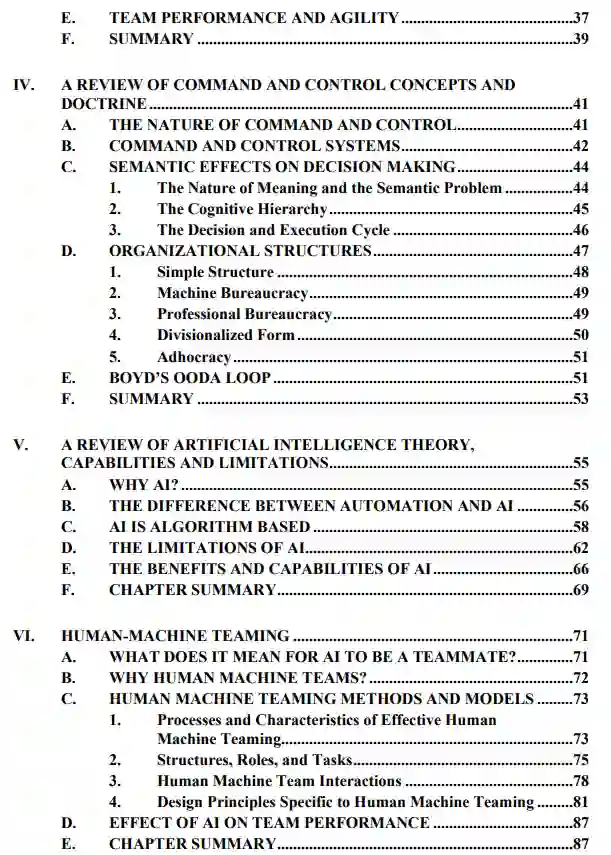 人工智能已经使用了几十年。它已经被部署在有人驾驶的编队中,并将在未来几年内继续被用于军事。目前的战略和作战概念要求在整个国防企业中增加使用人工智能能力,从高级领导人到战术边缘。不幸的是,人工智能和它们所支持的战士不会 "开箱即用"地兼容。简单地将人工智能植入人类团队并不能确保成功。美国防部必须仔细注意如何将人工智能与人类一起部署。这在团队中尤其如此,因为团队的结构和成员的行为可以决定业绩的好坏。由于人类和机器的工作方式不同,团队的设计应该利用每个伙伴的优势。团队设计应该考虑到机器伙伴的固有优势,并利用它们来弥补人类的弱点。这项研究通过提交新的概念模型,捕捉人类和机器在人机合作结构中运作时的理想团队行为,对知识体系做出了贡献。这些模型可以为人机团队的设计提供信息,从而提高团队的绩效和敏捷性。