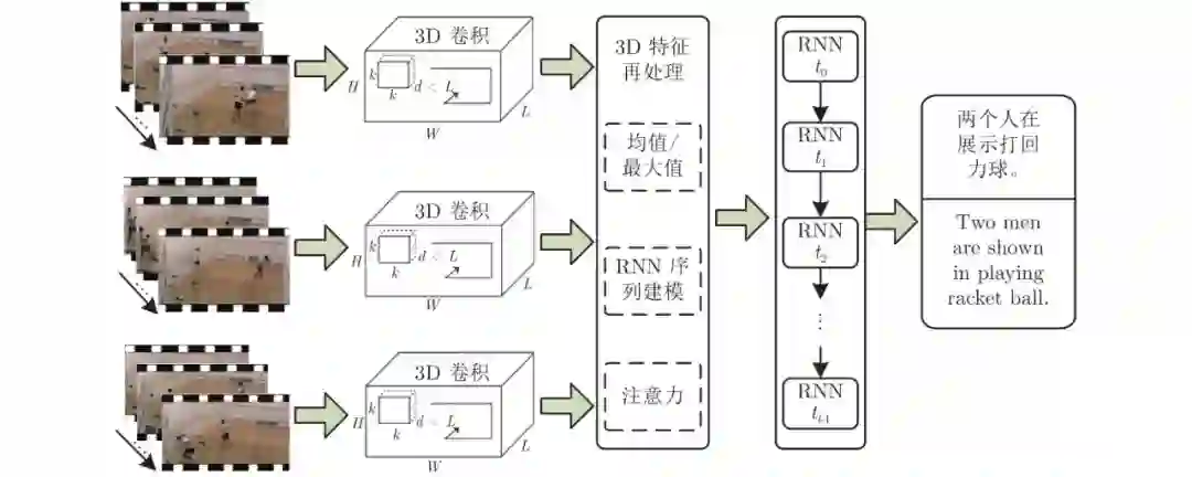 视频标题生成与描述任务是对给定的视频进行特征抽象, 并将其转换为自然语言, 对视觉内容进行结构化总结与重新表达. 它与目前流行的图像描述任务一样, 同属于计算机视觉高层语义理解范畴, 但鉴于视频数据的时空特性与语义的多样性、复杂性, 其比图像描述更具挑战性.