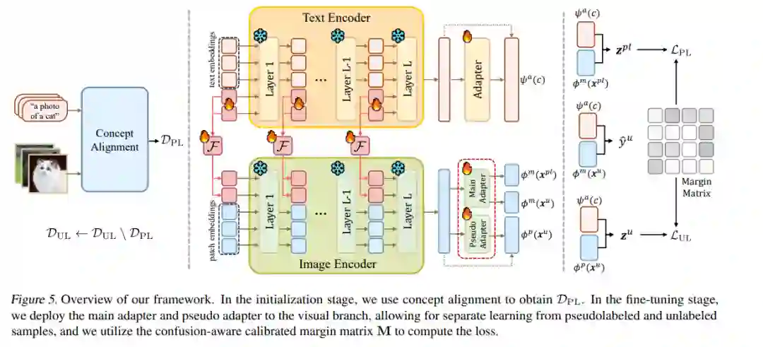 近年来,利用伪标签将视觉-语言模型(VLMs)适配至下游任务,逐渐引起了广泛关注。然而,VLMs 所生成的伪标签通常存在类别不平衡问题,进而导致模型性能下降。尽管现有方法已尝试采用多种策略缓解这一问题,但对其根本原因的研究仍显不足。为填补这一空白,本文深入探讨伪标签不平衡现象,并识别出两大关键诱因:概念不匹配与 概念混淆。 为缓解这两个问题,我们提出了一个新颖的框架,结合了概念对齐机制与混淆感知校准边界机制。该方法的核心在于增强表现较差的类别,并推动模型在各类别间实现更加平衡的预测,从而有效缓解伪标签的不平衡问题。 我们在六个基准数据集、三种学习范式上进行了大量实证实验,结果表明,所提方法在伪标签的准确性与平衡性方面均实现了显著提升,相较当前最先进方法取得了 6.29% 的相对性能提升。 我们的代码已开源,详见: https://anonymous.4open.science/r/CAP-C642/