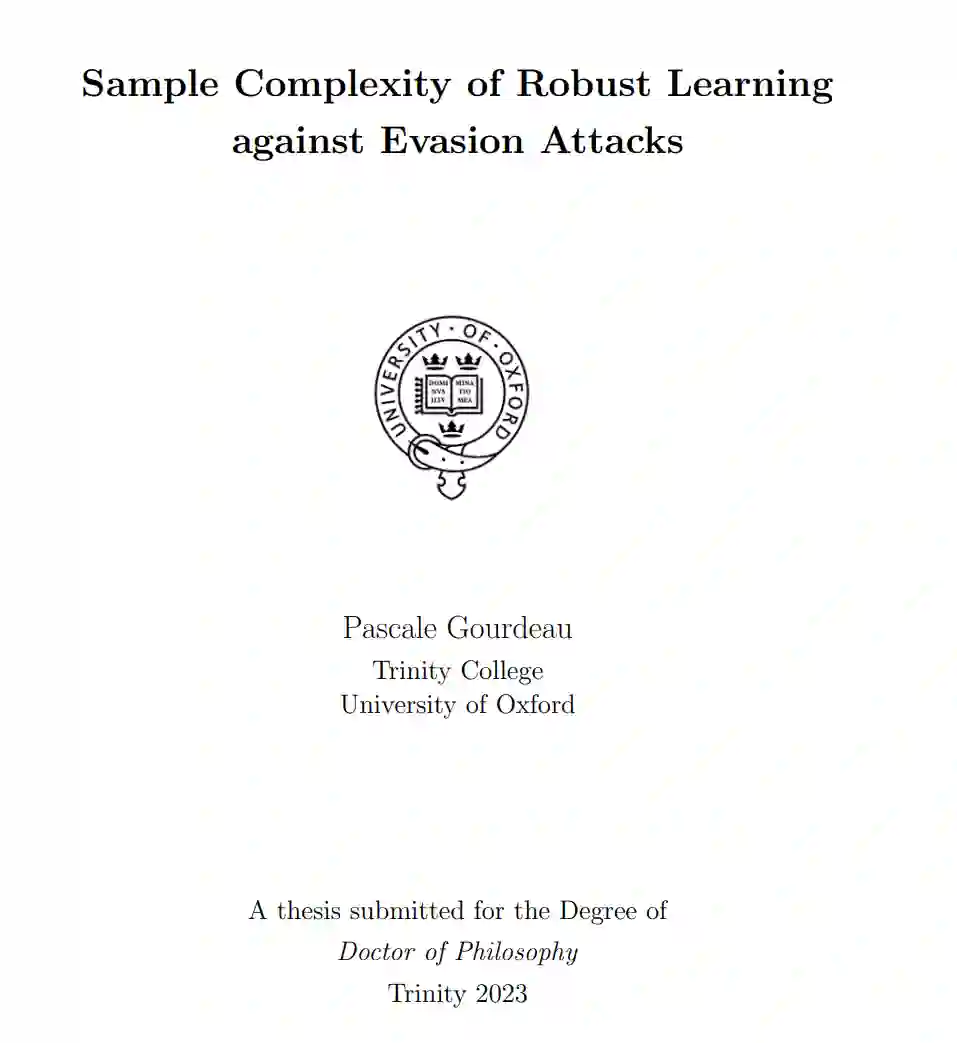 机器学习模型对抗性攻击的脆弱性的理解日益重要。在对抗性机器学习中,一个基本问题是在存在所谓的规避攻击的情况下量化需要多少训练数据,其中数据在测试时会被损坏。在本论文中,我们采用了“球内精确性”概念,从学习理论的角度研究了对抗性鲁棒学习的可行性,考虑样本复杂性。我们首先得出了两个负面结果。我们证明,在无分布设置下,任何非平凡的概念类都不能在对手能够扰动单个输入位的情况下得到鲁棒学习。然后,我们展示了样本复杂性的下界:单调合取的类以及布尔超立方体上的任何超类,其样本复杂性至少是对手预算(即每个输入上可以扰动的最大位数)的指数函数。特别地,这意味着在均匀分布下,不能对那些可以扰动输入的 ω(log n) 位的对手进行鲁棒学习。