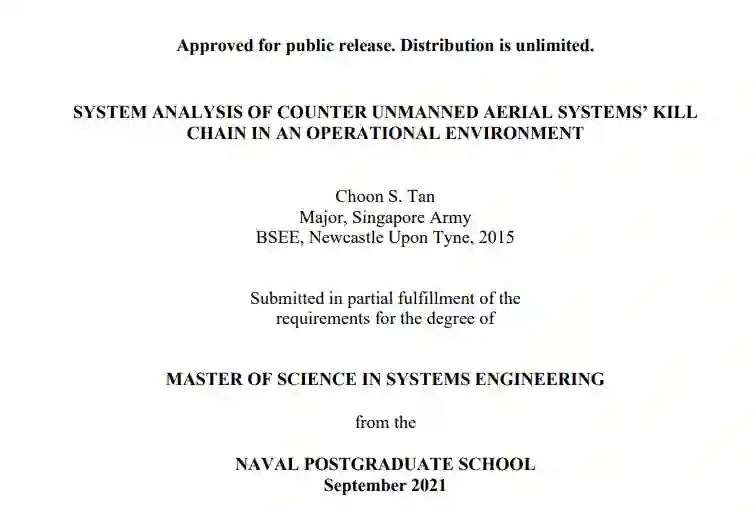 现有研究主要关注 CUAS 和 UAS 系统的技术能力,而没有从更广泛的系统工程角度进行研究。本论文的研究采用了系统工程视角,以支持设施指挥官了解设施在应对当前和新出现的无人机系统威胁时可能存在的薄弱环节,并平衡 CUAS 的能力与邻近利益相关者的需求[9]。第 2 章中提出的方法允许设施指挥官通过评估和分析探索可能的 CUAS 空间,以确保 CUAS 针对快速出现的无人机系统威胁进行优化并具有相关性。