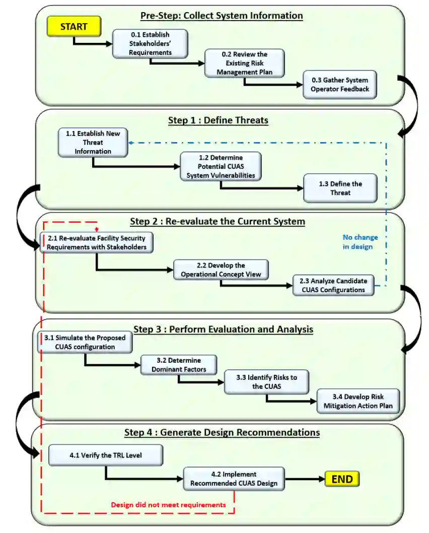图 拟议方法概述。该方法可用于设施指挥官分析现有 CUAS 系统的有效性,找出 CUAS 系统能力差距,提出 CUAS 系统升级建议,并提供 CUAS 系统设计审查。