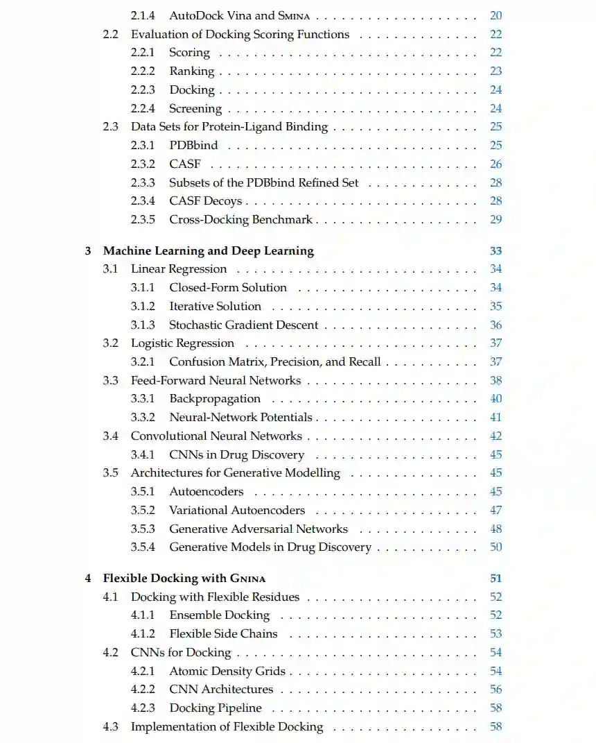 首先,我们实现了与最先进的基于卷积神经网络的对接软件Gnina中的柔性残基的对接,并对该方法进行了大规模的跨对接研究,概述了其优缺点。 其次,我们将卷积神经网络评分函数从对接软件中提取到一个独立的包中进行快速原型设计。有了新的软件,我们探索了用于监督学习的不同注释,以改进卷积神经网络的评分函数,以便与灵活的残差进行对接。 然后,基于一个成功的用于开发机器学习力场的深度学习架构,开发了一个新的绑定亲和性预测评分函数。 仔细评估了一种用于从头设计的生成模型,用于工业药物研发管道的应用。概述了该方法的弱点和当前生成模型评估的问题。