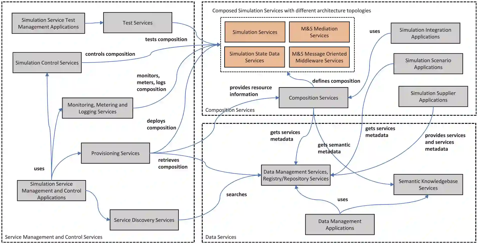 图7. 建模和仿真即服务基础设施功能之间的关系。