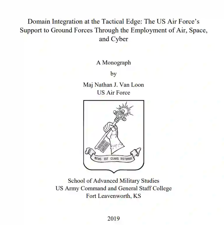 特别是,地面部队继续寻找发挥这些能力的途径,以提供一切可能的战场优势。20 世纪出现了利用空中力量影响地面行动的时代。在战术层面,空中力量通常是通过与陆地部队指挥官(LCC)合署办公的空中支援作战中心(ASOC),与每个下属旅及以下单位的终端攻击控制人员进行整合,为地面部队提供空中支援请求。然而,为了应对 21 世纪的挑战,更好地利用太空和网络的新兴能力,美国必须发展作战方式,更好地整合空中支援以外的能力,为陆军提供空中支援。在这些能力中,空军部控制着空中、太空和网络组合中的大部分资产,但并没有充分利用它们来支持陆基战役,而是将它们视为独立的能力,提供独立的效果,而不是辅助作用。这就催生了本专著的研究问题: “在战场上,空军需要做些什么才能为地面部队提供多领域支持?