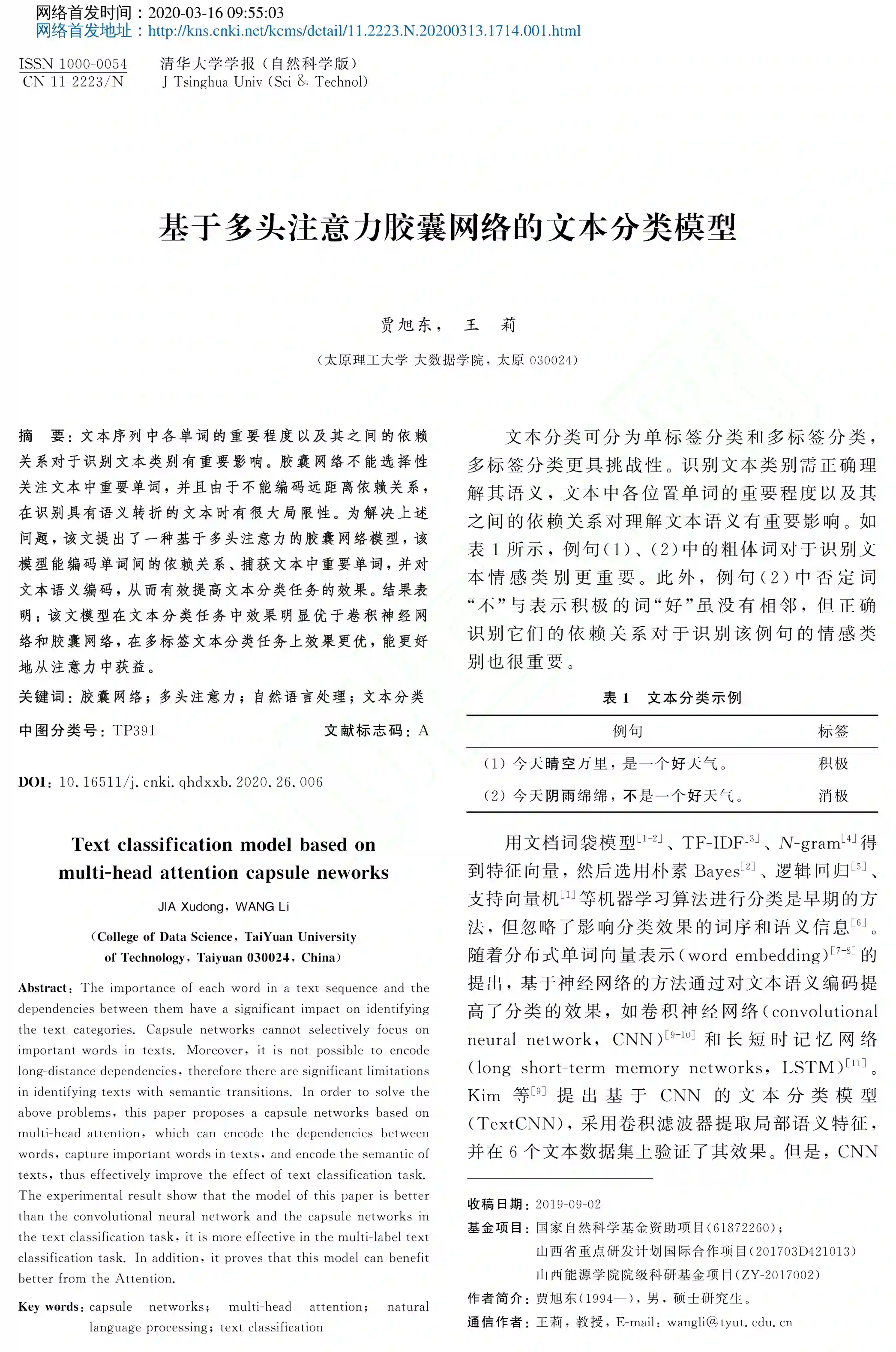 摘要:文本序列中各单词的重要程度以及其之间的依赖关系对于识别文本类别有重要影响.胶囊网络不能选择性关注文本中重要单词,并且由于不能编码远距离依赖关系,在识别具有语义转折的文本时有很大局限性.为解决上述问题,该文提出了一种基于多头注意力的胶囊网络模型,该模型能编码单词间的依赖关系、捕获文本中重要单词,并对文本语义编码,从而有效提高文本分类任务的效果.结果表明:该文模型在文本分类任务中效果明显优于卷积神经网络和胶囊网络,在多标签文本分类任务上效果更优,能更好地从注意力中获益。