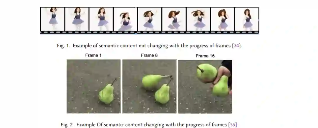 2022年标志着生成式人工智能领域的一个重要里程碑,随着ChatGPT的发布[108]。ChatGPT是一个先进的语言模型,能够根据用户输入生成类似人类的文本,支持回答问题、创意写作和对话等任务。该技术使用复杂的深度神经网络,基于大量文本数据训练的大型语言模型,捕捉复杂的语言模式和上下文细微差别,从而实现精确的文本生成与理解。自那时以来,主要的科技公司相继推出了各自的大型语言模型(LLMs),如Facebook的LLama系列[103]、Google的Gemini[102]以及其他一些值得注意的模型,包括Claude[101]和Mistral[107]。 随着大型语言模型的成功,图像生成领域也迎来了变革性的突破。DALL-E 2[79]代表了一个重要的飞跃,超越了传统的生成对抗网络(GAN)和变分自编码器(VAE)模型,凭借其解读自然语言并渲染各种概念和风格的能力。它在从现实和富有想象力的提示中生成照片级真实图像方面表现出色。其他领先的生成式AI系统,如Stable Diffusion 3[19]和MidJourney[106],也展示了在基于真实与想象的创意生成照片级视觉效果方面的卓越能力。 生成视频远比生成文本或图像具有更大的挑战。与静态图像或文本不同,视频是动态的,包含变化的摄像机角度、运动、形变和遮挡模式。生成真实感强的长时间视频需要不断生成新内容,同时保持一致性。视频由多帧组成,每一帧的语义内容都会随着视频进程而变化。在这里,"语义内容"指的是一帧图像的概念性地图,表示该帧中的各个元素(如物体、动作和互动)如何共同贡献于对视频的整体理解。例如,图1展示了一个单场景视频,视频中一个女孩在静止的背景前重复舞动。这个例子突出了帧之间语义内容的最小变化,没有引入新角色或动作。这样的短视频片段可以被分类为单一场景,其语义内容在整个过程中保持不变或大致一致。相比之下,图2展示了一个多场景视频的例子,在后续的帧中物体的数量发生了变化,并且出现了新的演员。在这种情况下,随着视频的推进,帧的语义内容发生了变化。 由于动态场景的复杂性,早期的视频生成模型仅限于生成持续几秒钟的短视频,这些视频通常只对一个静态帧进行动画化,而没有引入变化的背景或物体。例如,Make-A-Video[88]和RunwayML Gen-2[104]生成了4-5秒钟的视频,使用一个动画帧,语义内容变化很小。CogVideo[35]是最早的长视频生成模型之一,它使用自回归变压器生成扩展视频。然而,它基于单一提示,并且视频的语义内容变化很小。Phenaki[120]采用自回归视频变压器,是最早的可以基于多个提示生成具有动态语义内容的长视频的模型之一。同样,Gen-L-Video[124]使用扩散模型将短视频片段组合成一个连续的视频。最近,Sora[110]在视频生成中建立了新的最先进技术。它利用扩散变压器和从压缩的时空表示中采样,生成视觉效果惊艳且语义内容丰富的视频。RunwayML的Gen-3 Alpha[105]是另一种在长视频生成中达到最先进水平的模型。它是一个商业模型,可以生成最长10秒的照片级真实视频,同样基于扩散变压器。图3展示了这些长视频生成技术的演变,相较于人类制作的商业视频,尤其在视频长度和叙事组织方面,这些技术仍处于初级阶段。 1.1 综述贡献 — 总结长视频生成方法的必要性
