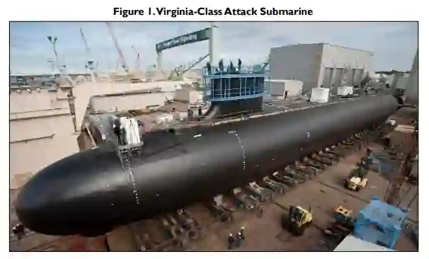 美海军弗吉尼亚级潜艇项目。自1998财年起,海军开始采购弗吉尼亚级(SSN-774)核动力攻击潜艇(SSN),截至2024财年已累计采购40艘。从2011财年至2024财年,该级潜艇以每年两艘的速度采购。按此采购速率估算,每艘造价约为45亿美元。尽管采购计划定为每年两艘,但弗吉尼亚级实际年产量从未达到过2.0艘,且自2022年起年产量被限制在约1.2艘,导致已采购但未建造的潜艇积压数量不断增加。海军与工业界正致力于将弗吉尼亚级年产量提升至2028年达到2.0艘,随后进一步增至每年2.33艘,以实现每年两艘的采购目标,替换根据AUKUS潜艇项目(支柱1)计划售予澳大利亚的三到五艘弗吉尼亚级潜艇(详见下文),并减少累积的弗吉尼亚级生产积压。国会已为此拨款数十亿美元用于支持潜艇工业基础建设。