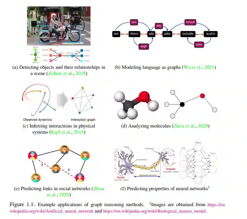 我们的世界是一个复杂的组合系统,简单的组件用来创建更复杂的组件,所有组件以一种非平凡的方式交互。其中一个组成部分就是人类,人类天生就有能力积累多样化的多领域知识,并学习周围世界的丰富组成结构。这种知识使人类能够轻松地解决大量复杂的任务。例如,给定一个复杂动态3D场景的静态2D图像,人类能够识别物体,它们的部分,它们之间的关系,并预测场景中的未来事件。人类甚至可以预测场景的地理和人口背景,并推断场景的情感等抽象属性(图1.1,a)。工程旨在开发能够替代人类执行此类任务的系统和算法,特别是重复性、费力或危险的任务。在一些实际场景中,如理解2D图像,这些系统需要从传感器记录的输入中恢复原始成分结构(图1.1,a-c)。例如,机器人或自动驾驶汽车需要从原始像素或点云中检测物体及其关系。在其他场景中,组合结构已经提供(例如,由另一个系统或人类提供),算法需要对组合输入进行推理,以做出复杂的高级决策(图1.1,d-f)。例如:预测分子的性质,预测未来人与人之间的联系,或预测生物或人工神经网络的性质。