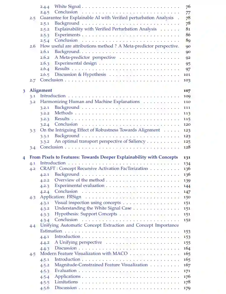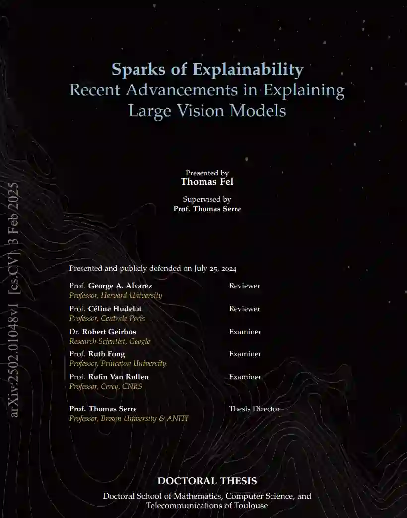 本论文旨在推动计算机视觉领域中可解释性技术的前沿发展,并开发相应的工具集,专注于增强我们对目前在视觉任务中使用的深度神经网络特征的理解。可解释性是改进人类与人工智能系统之间交互的关键领域,从科学角度来看,它也有助于解读一种全新的智能形式:人工智能。更具体地说,这些模型的复杂性和缺乏透明性构成了它们在关键系统中应用的主要障碍,并提出了一些重要问题,如果其机制能够被解码,可能会在我们理解智能的过程中带来显著进展。通过本论文,我们探索了几种可解释性方法,它们各自有助于提高视觉模型的可解释性,同时也承认其各自的局限性。 我们首先对归因方法(又称显著性图或热力图)进行了详细分析。这些技术通过热力图揭示模型在做出决策时关注的区域。第一篇论文提出了一种受算法稳定性启发的度量,该度量基于这些归因来评估模型提供的解释质量,从而识别出那些提供最佳解释的模型。接下来,我们介绍了一种受全局敏感性分析(Global Sensitivity Analysis)启发的新归因方法,该方法基于Sobol指标。这个黑箱方法,凭借坚实的理论基础,通过使用准蒙特卡罗序列,使得计算时间比现有方法减少了一半。然后,我们继续介绍第一个具有正式保证的归因方法——EVA,该方法依赖于已验证的扰动分析。 令人惊讶的是,在与实际用户进行的真实使用案例测试中,这些方法在帮助理解模型方面效果甚微。具体来说,在复杂场景中,这些技术表现不佳,而在简单场景中,它们足以揭示偏差。于是,我们提出了两个假设来应对这些挑战:第一个假设认为需要将计算机视觉模型与人类推理对齐,从而对模型本身提出质疑;第二个假设认为现有的归因方法不足,不能揭示足够的信息。这些假设将在专门的章节中进行探讨。 为了解决第一个假设,我们提出了一种新的训练方法,该方法不仅旨在最小化常规的代价函数,还旨在模仿人类的解释,换句话说,要求模型能做到“正确的原因,正确的结果”。令人惊讶的是,模型不仅成功地借鉴了人类的策略并进行泛化,而且它们的准确性也得到了提升。接着,我们探索了第二种方法,该方法通过约束而非正则化来对齐模型,通过在1-Lipschitz函数的限制功能空间中优化模型。分析表明,具有1-Lipschitz属性的模型的鲁棒性与它们提供与人类推理一致的解释能力之间存在联系。 接下来,我们探讨了第二个假设,即现有的归因方法不足,因为它们仅揭示了模型关注的“位置”,而没有具体说明模型感知到了什么。我们采用了一种基于概念的可解释性方法,从关注“何处”转向理解模型感知的“何物”。这一转变通过CRAFT方法得以实现,该方法自动提取模型使用的概念,然后评估每个提取概念的重要性。我们深入分析了当前概念提取方法的组成部分,并证明它们包括两个阶段:提取阶段和重要性评估阶段。随后,我们通过展示提取阶段可以被概念化为字典学习问题,并且重要性评估阶段隐式地使用了归因方法,统一了文献中不同的方法。通过建立这一统一框架,我们介绍了MACO,一种特征可视化方法,我们将其应用于概念上,允许可视化提取的概念。最后,我们将这些方法整合到一个互动展示中,提供对ResNet模型的1000个ImageNet类别最重要概念的探索和理解。 论文最后对所开发的方法、取得的进展以及遇到的挑战进行了深入反思,并为人工智能可解释性领域的未来研究方向开辟了新视角。我们强调继续寻找不同方法之间协同作用的重要性,并展望充分利用可解释人工智能潜力的前景。
