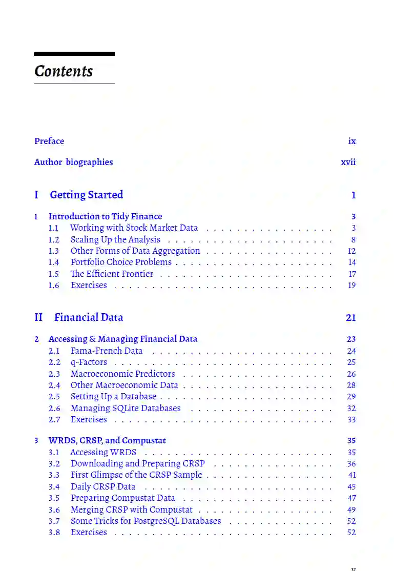这本教科书在可再现金融上拉开帷幕,并展示了如何通过提供一个完全透明的R代码基础来应用金融和计量经济学的理论概念。聚焦于R的编码和数据分析,我们展示了学生、研究人员、数据科学家和专业人员如何从零开始进行实证金融研究。我们从对初学者友好的R包tidyverse系列介绍开始,我们的方法围绕着它。然后,展示如何访问和准备公共开源数据源(如法国数据库、宏观经济数据)和专有金融数据源(如CRSP、Compustat、merge FISD和TRACE)。我们使用SQLite数据库来介绍数据管理原则,它是后续章节中介绍的应用程序的基础。实证应用范围从实证资产定价的关键概念(例如beta估计、投资组合排序、性能分析和Fama-French因子)到建模和机器学习应用(例如固定效应估计、聚类标准误差、差中差估计器、岭回归、套索、弹性网络、随机森林和神经网络)和投资组合优化技术。1. 关于金融中最重要的应用和方法的独立章节,可以很容易地用于读者的研究或作为实证金融课程的参考。2. 每一章都是可复制的,因为读者可以通过简单地复制粘贴我们提供的代码来复制每一个图形、表格或数字。3.全面介绍机器学习,使用基于整齐原则的整齐模型,展示因素选择和期权定价如何从机器学习方法中受益。4. 一章展示了如何检索和准备金融经济学领域中最重要的数据集:CRSP和Compustat。本章还详细解释了最相关的数据特征。5. 每一章都提供了基于已建立的讲座和练习课程的练习,旨在帮助学生深入挖掘。这些练习可以用于自学,也可以作为教学练习的灵感来源。