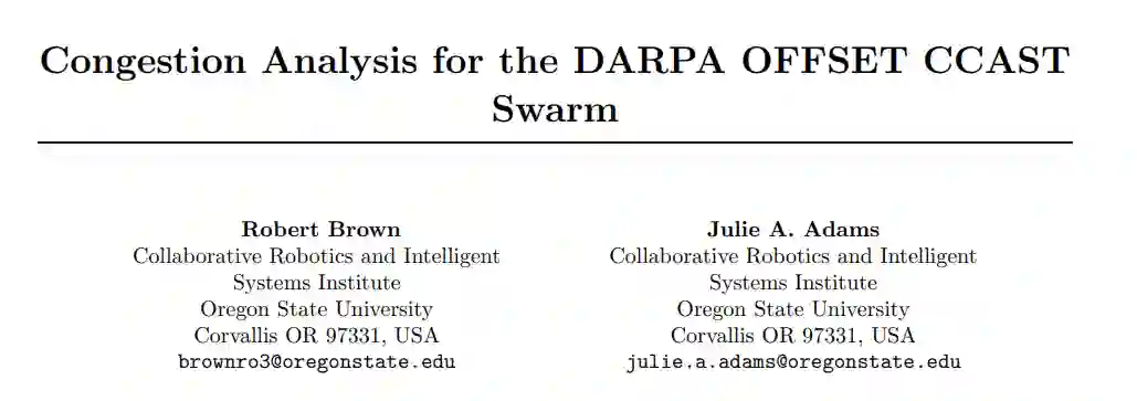 首先概述了 CCAST 蜂群系统,然后回顾了相关的拥堵缓解文献。提供了 FX6 之前两个 CACTF 的拥堵分析结果。FX6 之后的后续分析调查了 FX6 期间发生的拥堵情况,以及使用相同任务计划进行模拟试验得出的拥堵情况。CCAST 的多保真蜂群模拟器用于生成结果。提供了每项分析的实验方法和相应结果。讨论深入探讨了拥堵对任务进度和缓解方法的影响。