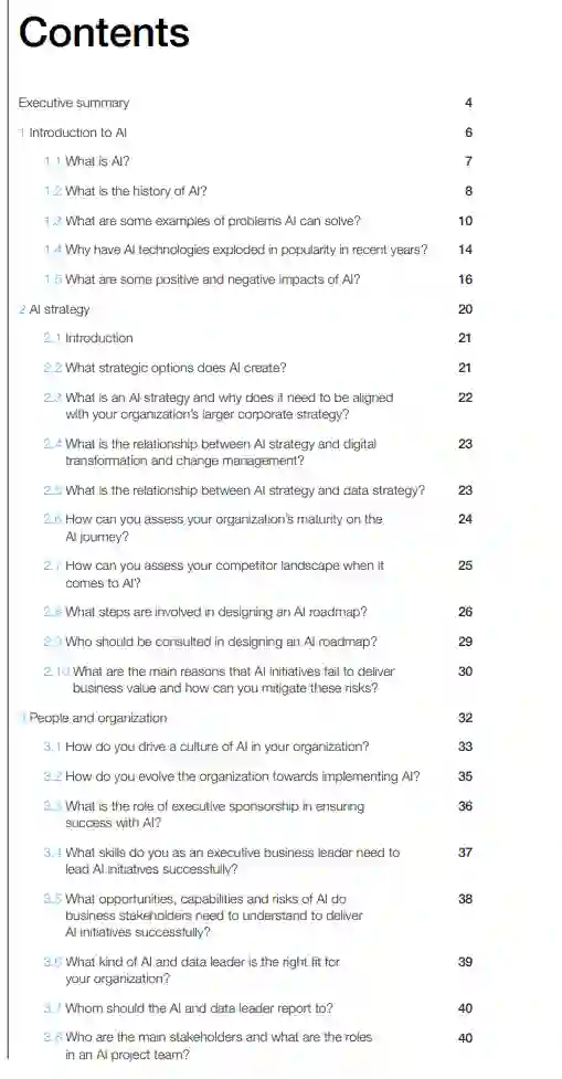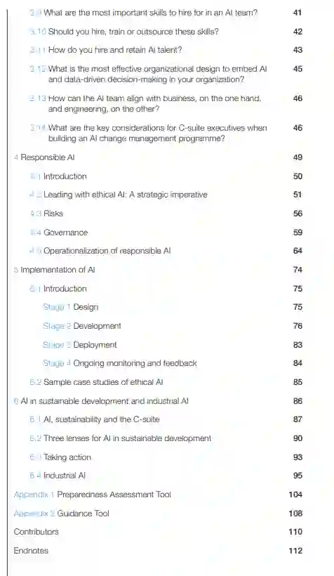 该报告是对上届世界经济论坛指导董事会如何应对人工智能工作的补充,并提供了一套工具,可以帮助企业高管了解人工智能对各个方面的影响,并就其未来做出明智的决策,落地实施。该工具包是来自不同公司和行业的几位人工智能专家和执行官合作的结果,由人工智能战略、负责任的人工智能和人工智能实施等五个主要领域组成。关于人工智能战略,该报告清楚地解决了一些基本问题,例如人工智能创造的战略选择是什么,为什么它需要与组织的整体战略保持一致,以及如何简单地评估组织在人工智能之旅中的成熟度。
