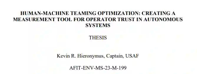 自动化已成为现代经济的重要组成部分。在众多业务、任务和项目中,通过增加有限的人力,可以提高生产率。随着自动化流程越来越多地融入日常生活,了解人类操作员与自动化之间的关系变得至关重要。过去,自动化开发依赖于操作员的反馈,而操作员对类似系统的熟悉程度和对现代技术的接受程度可能会有所不同。这一事实凸显出缺乏一种标准化的衡量标准,可以量化个人对自动化系统的信任程度。本研究就建立了这样一种衡量标准。自动化信任度指标是通过一个多步骤流程创建的,首先由主题专家进行 Q 排序,以确定数据集的相关项目。然后,将得到的项目发送给 145 名受访者进行探索性因子分析 (EFA),将项目归类为因子,并剔除表现不如预期的项目。在实施 EFA 分析结果后,又对 168 名受访者进行了确认性因子分析 (CFA),以证实 EFA 分析结果,并找出影响个人对自动化信任程度的重要问题。这一研究过程产生了一个可应用于各种系统的八问调查,它能可靠地测量人类对机器信任的四个方面。