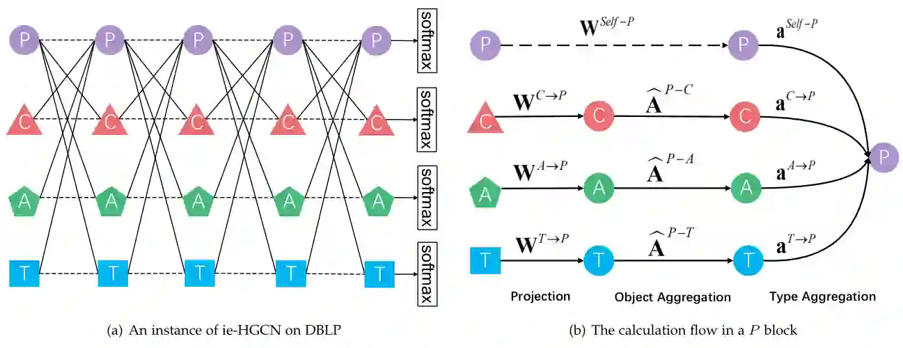 图卷积网络(GCN)在学习图中节点的有效任务特定表示方面取得了非凡的成功。然而,对于异构信息网络(HIN),存在面向hin的GCN方法仍然存在两个不足:(1)不能灵活地探索所有可能的元路径,并提取出对目标对象最有用的元路径,这既影响了有效性,也影响了可解释性; (2)经常需要生成中间的元路径密集图,计算复杂度高。为了解决上述问题,我们提出一种可解释且高效的异构图卷积网络(ei-HGCN)来学习HINs中对象的表示。它被设计为一个层次聚合架构。,首先是对象级聚合,然后是类型级聚合。该结构能够在一定长度范围内从所有可能的元路径中为每个对象自动提取出有用的元路径,具有良好的模型可解释性。避免了中间HIN转换和邻域关注,降低了计算量。在评估所有可能元路径的有用性、它与HINs上的谱图卷积的联系以及它的准线性时间复杂度方面,我们提供了关于ei-HGCN的理论分析。在三个真实网络数据集上的大量实验证明了ei-HGCN比现有方法的优越性。