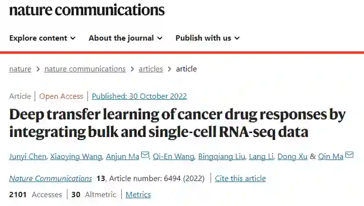 参考资料 Chen, J., Wang, X., Ma, A. et al. Deep transfer learning of cancer drug responses by integrating bulk and single-cell RNA-seq data. Nat Commun 13, 6494 (2022). https://doi.org/10.1038/s41467-022-34277-7