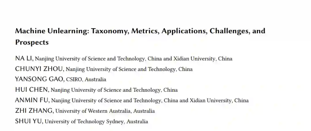 值得注意的是,遗忘数据不仅符合法律要求以保护隐私,而且在其他场景中也是有益的。它可以遗忘由于有害数据(例如,对抗数据、投毒数据[134]、噪声标签[80])或过时数据造成的不利影响,从而提高模型的安全性、响应性和可靠性。此外,通过遗忘对手针对的受害者数据,它可以减轻多种隐私攻击,如成员推断攻击和模型反转攻击,防止模型中敏感训练数据的私人信息泄露。