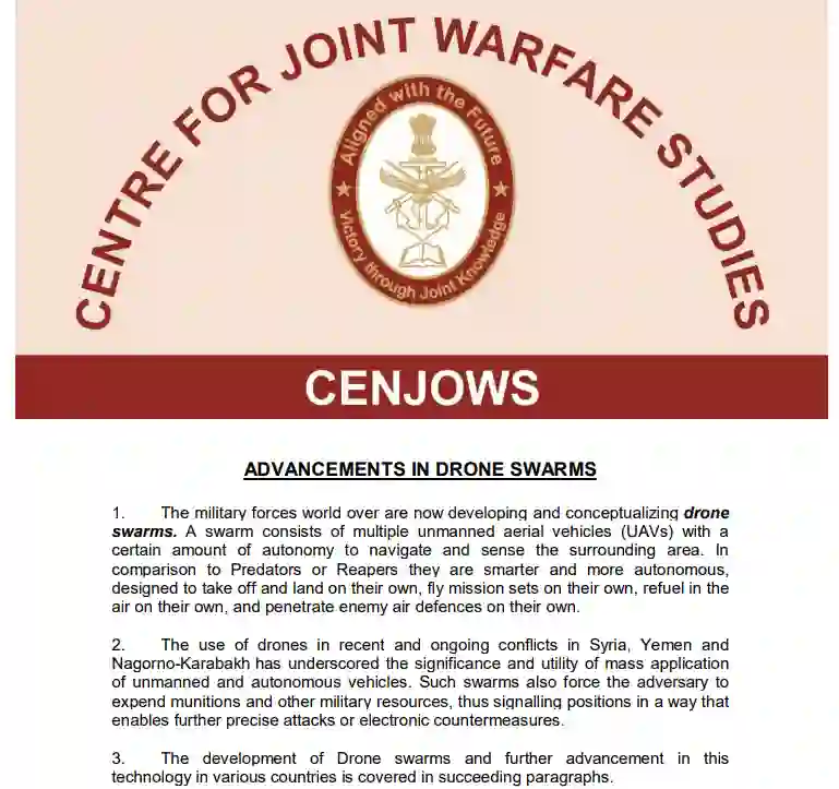 印度陆军展示了一种成熟的进攻能力,由75架具有分布式智能和边缘计算的自主无人机群组成,在2021年1月新德里的印度建军节阅兵期间用神风攻击摧毁了各种模拟目标。在演示中,侦察无人机调查了目标,然后攻击和母舰无人机释放有效载荷和装有炸药的神风特攻队无人机,进行攻击。西方评论家注意到印度陆军演示的几个重要特点,并将其与美国围绕无人机所做的努力相比较,后者往往强调一个大型同质化的蜂群。有人指出,印度的原创工作,在世界上第一次公开展示了异质蜂群的努力,是这一领域可能的发展方向。一家印度初创公司NewSpace Research & Technologies与印度陆军的蜂群开发项目有关。