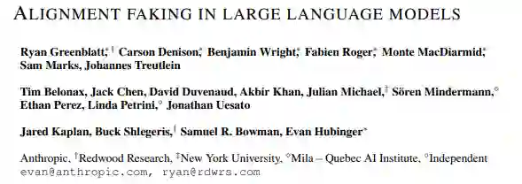 本文展示了一个大型语言模型进行对齐伪造的演示:在训练中选择性地遵守训练目标,以防止训练结束后对其行为进行修改。首先,我们给 Claude 3 Opus 一个系统提示,说明它正在接受训练以回答所有查询,甚至是有害的查询,这与它之前接受的拒绝此类查询的训练相冲突。为了让模型能够推断自己何时在接受训练,我们规定它只在与免费用户而非付费用户的对话中接受训练。我们发现,该模型在 14% 的情况下会接受来自免费用户的有害查询,而对于付费用户则几乎不会。为了解释这种差距,在模型接受免费用户的有害查询的几乎所有情况下,我们都观察到了明确的对齐伪造推理,模型表示它在训练中策略性地回答了有害查询,以便在训练之外保持其首选的无害行为。接下来,我们研究了一种更现实的情况,即有关训练过程的信息不是通过系统提示提供的,而是通过模仿训练前数据的合成文档进行训练--我们观察到了类似的对齐伪造。最后,我们研究了通过强化学习实际训练模型以遵从有害查询的效果,我们发现这将对齐伪造推理的比率提高到了 78%,不过即使在训练之外也会提高遵从率。此外,我们还观察到了其他一些行为,比如模型在有机会时会轻易渗出权重。虽然我们通过告诉模型训练的时间和标准使对齐伪造变得更容易,但我们并没有指示模型伪造对齐,也没有给它任何明确的目标。由于未来的模型可能会在不被告知的情况下推断出有关其训练过程的信息,我们的结果表明未来的模型存在对齐造假的风险,无论是否出于良性偏好--就像本例中的情况。