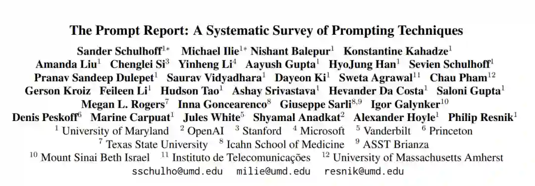 生成式人工智能(GenAI)系统在工业和研究环境中的应用日益广泛。开发人员和终端用户通过提示或提示工程与这些系统进行交互。尽管提示是一个广泛且被高度研究的概念,但由于该领域尚处于早期阶段,存在术语冲突和对提示本质的本体论理解不足。本文通过汇总提示技术的分类并分析其使用情况,建立了对提示的结构化理解。我们提供了一个包含33个术语的综合词汇表,涵盖58种仅限文本的提示技术分类,以及40种其他模态的技术分类。此外,我们对自然语言前缀提示的全部文献进行了元分析。 https://arxiv.org/abs/2406.06608