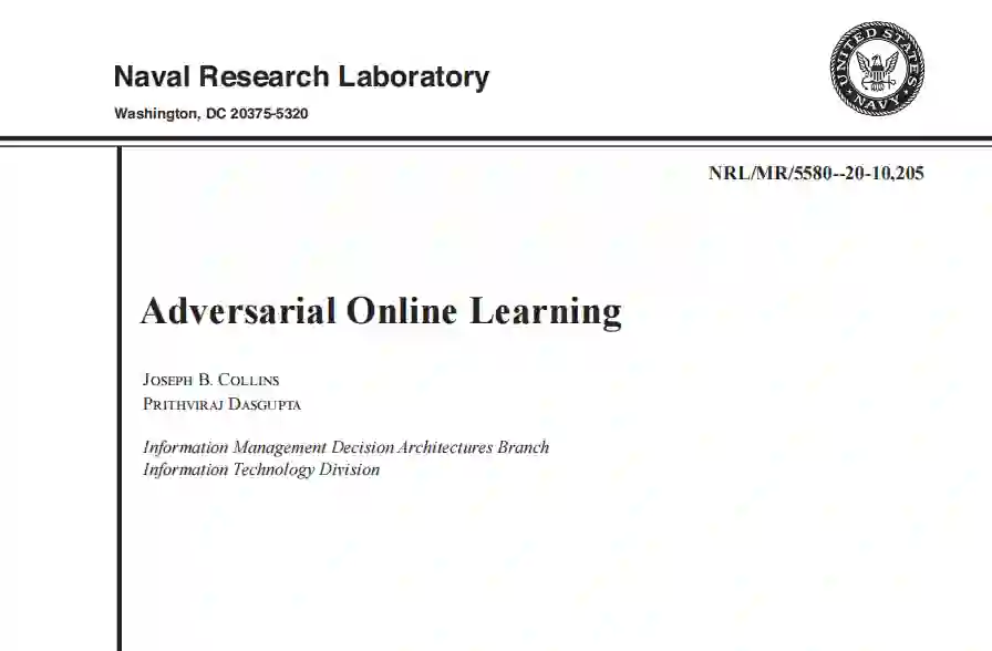 本备忘录报告是对美国海军研究实验室(NRL)资助项目 "对抗性在线学习"研究成果的总结,该项目资助周期为2017财年到2020财年。其主要目标是研究和展示在线机器学习算法的安全漏洞,并以博弈论分析和计算方法为支撑进行利用和反制。