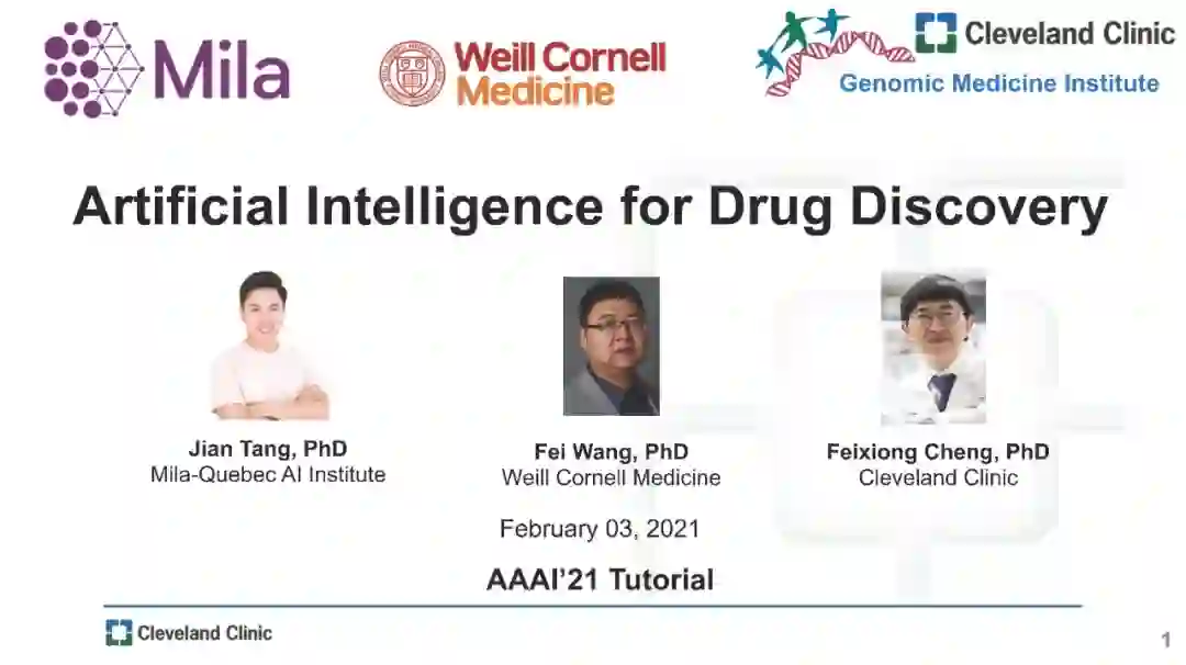 【导读】国际人工智能会议AAAI 2021论文将在全程线上举办,时间在 2 月 2 日-2 月 9 日,本届大会也将是第 35 届 AAAI 大会。大会涵盖了众多最近研究进展报告,来自MIla唐建博士、FeiWang博士、Feixiong Cheng共同做了关于人工智能药物发现的进展报告,非常值得关注!