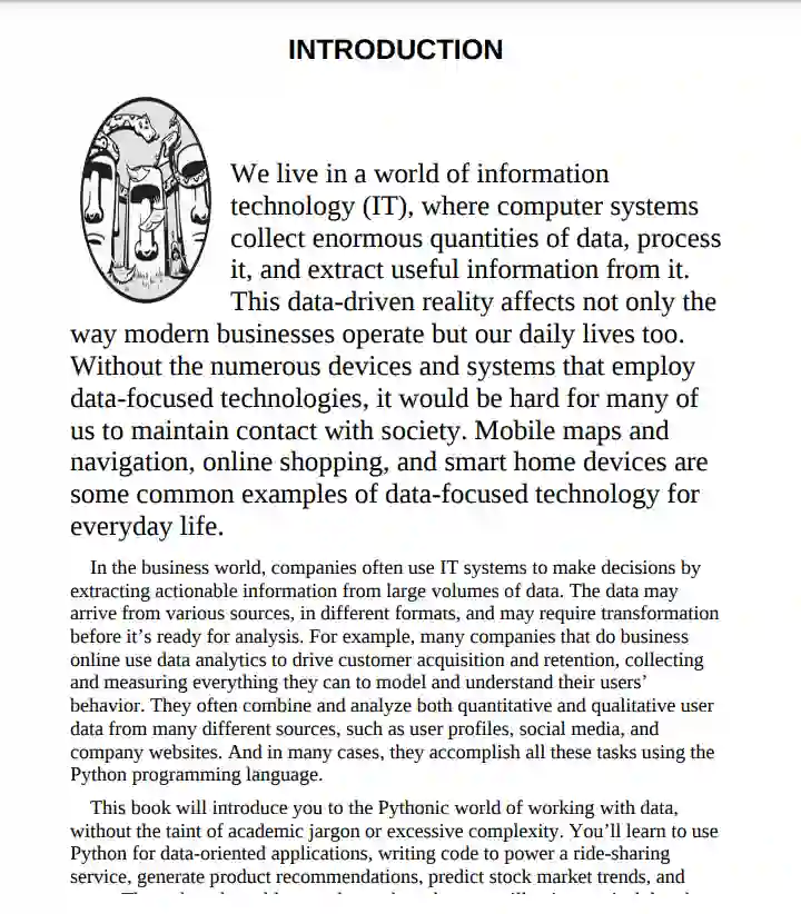 这本书从数据处理和分析的概念介绍开始,解释一个典型的数据处理管道。然后,我们将介绍Python的内置数据结构和一些广泛用于数据科学应用程序的第三方Python库。接下来,我们将探讨用于获取、组合、聚合、分组、分析和可视化不同大小和数据类型的数据集的日益复杂的技术。随着本书的深入,我们将把Python数据科学技术应用到商业管理、市场营销和金融领域的实际用例中。每一章都包含“练习”部分,这样你就可以练习和巩固你刚刚学到的知识。