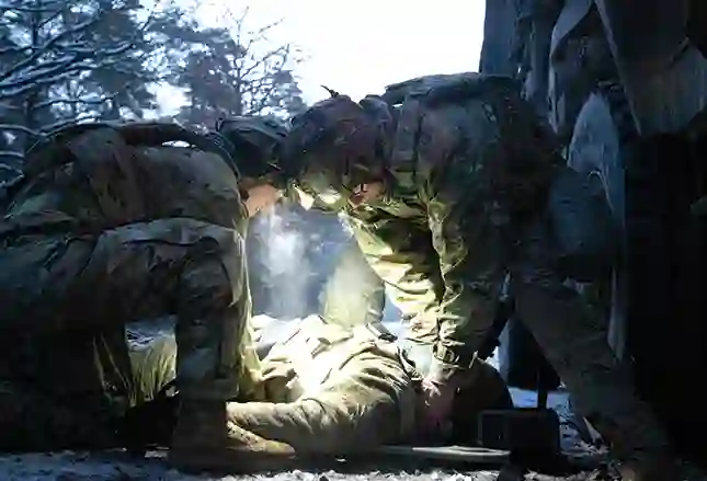 图:2023 年 12 月 7 日,在德国格拉芬沃尔(Grafenwöhr),隶属于第一装甲师第二装甲旅战斗队第一骑兵团第一中队总部和总部分队的康纳-伊格诺齐(Connor Ignozzi)和卡尔-克利夫兰(Carl Cleveland)上等兵在评估一名模拟翻车伤员时没有浪费任何时间。人工智能可以通过多种方式加强伤员护理,包括伤员评估、数据传输和处理、病人监护和医疗后送等。