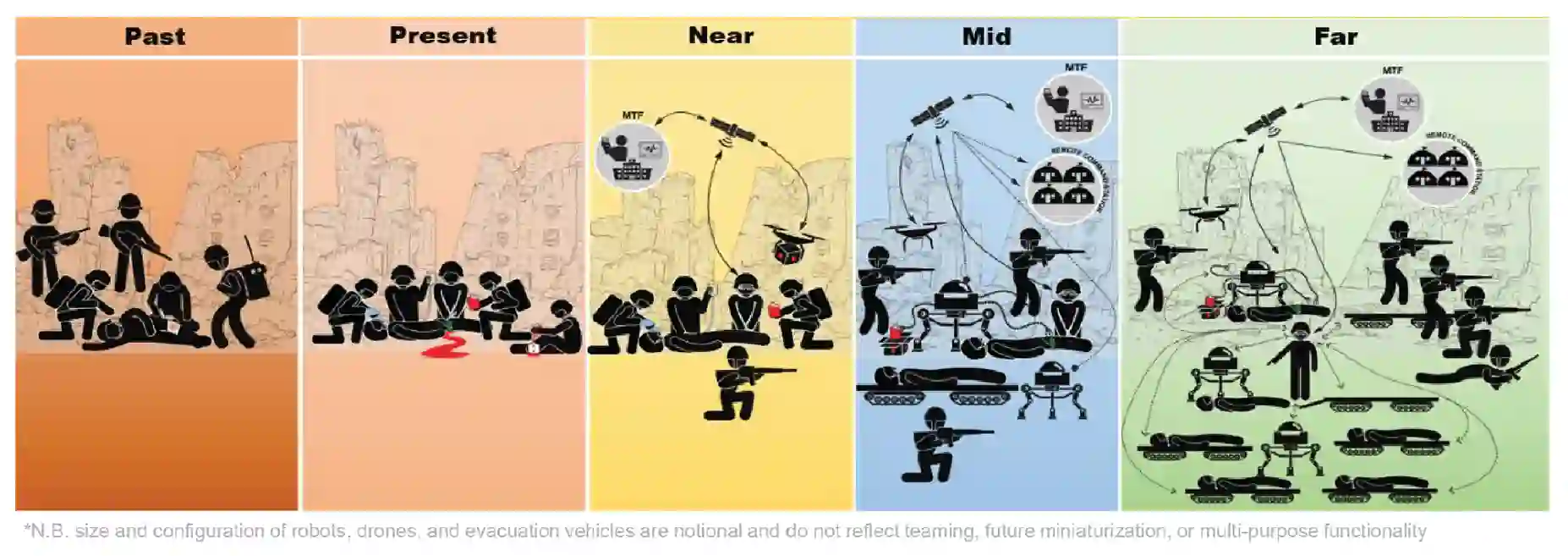 目前,多国医疗服务系统采用北约的护理角色指南(角色 1-4),以线性方式管理整个护理过程中的伤员。从条令上讲,这种后送系统在每个护理级别的能力和容量都在不断提高;但在执行中,它是不对称的,需要在各个级别进行大量沟通和人力投入才能取得成功。未来,条令上的救护角色很可能会被打乱,从而导致多点失效。主要依靠快速撤离、适当通信和机动自由。然而,未来战争将使伤员无法像在非洲和目前在乌克兰战场上看到的那样,在战场救护中直线前进。先进的医疗和外科护理,以及在撤离前长时间留住病人的能力,可能需要更接近受伤点,并在整个作战空间联网,以保持系统的弹性。